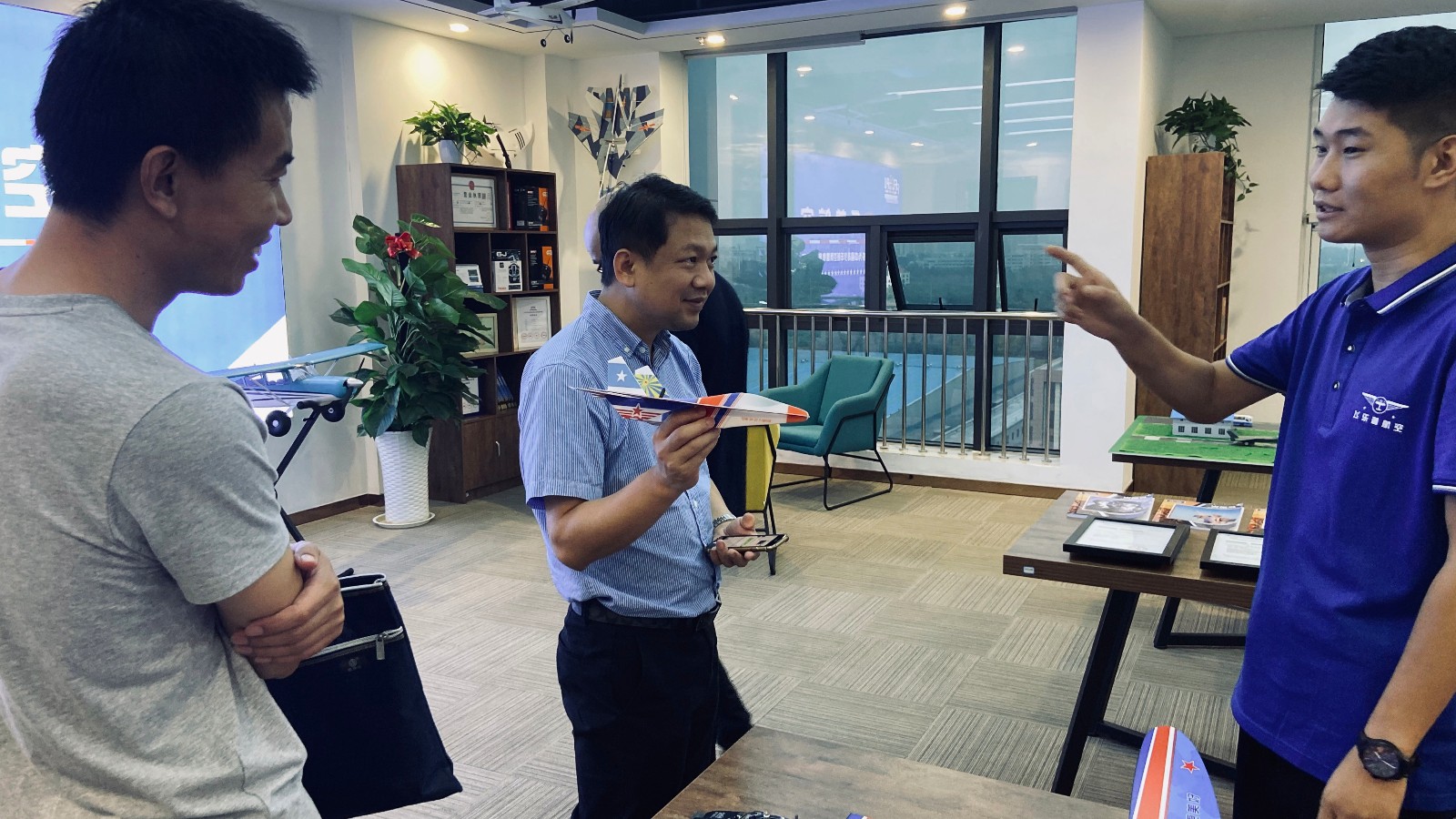 葉永圣老師,現(xiàn)任深圳市東方富海投資管理有限公司副總監(jiān),北京大學法學學士,香港科技大學工商管理碩士,擁有十余年企業(yè)咨詢管理、風險管理咨詢、內(nèi)控管理,以及股權(quán)投資經(jīng)驗,側(cè)重新能源新材料,信息技術(shù),醫(yī)療健康等方向。葉永圣老師在參觀過程中如孩子般喜歡航模,愛不釋手。